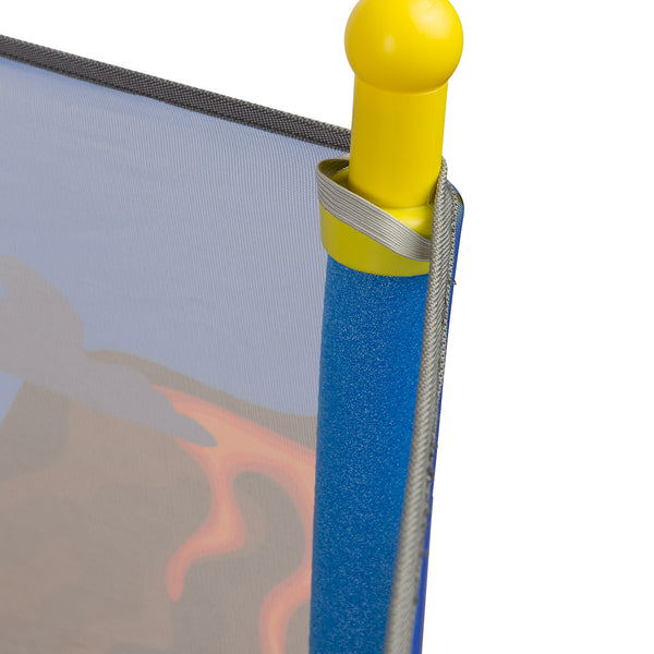 🛡️Varnost: red de protección y cubierta suave para los postes.